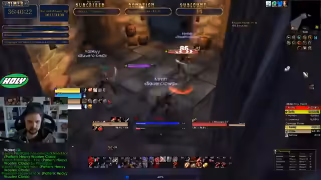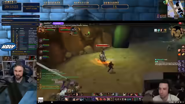 08:40:04Das Team beginnt den Stockades-Dungeon mit der klaren Absicht, diesen zu clearen. Der Streamer stellt sicher, dass alle aktuellen Quests geteilt werden, bevor es losgeht. Während des Dungeons gibt es strategische Absprachen, wie man die Mobs pullt und welche Bosse zuerst angegangen werden. Gleichzeitig wird über eine separate Raid-Situation im Rotkammgebirge gesprochen, bei der ein Streamer von Mr. Smite getötet wurde, was für Unmut in der Gruppe sorgte.