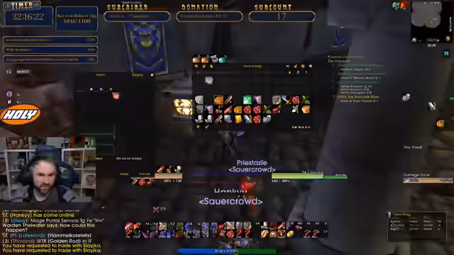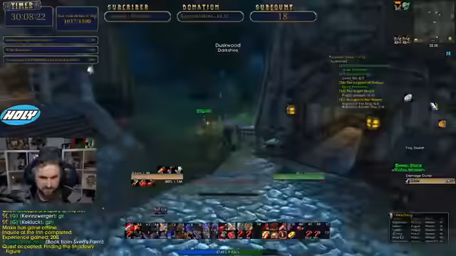 08:02:12Der Streamer spielt ein WoW-Classic-Spiel und führt aktuelle Quests aus, wie Sven's Revenge. Dabei experimentiert er mit verschiedenen Skills und Buffs, wie Onibuff, der den Schaden erheblich erhöht. Es gibt technische Diskussionen über Follow-up-Quests, Item-Drops und den optimalen Schadensoutput, wobei Low-Level-Boni und spezifische Fähigkeiten wie Finister Strike thematisiert werden. Die Stream-Einheit ist geprägt vom ständigen Gameplay und Analyse aktueller Spielmechaniken.