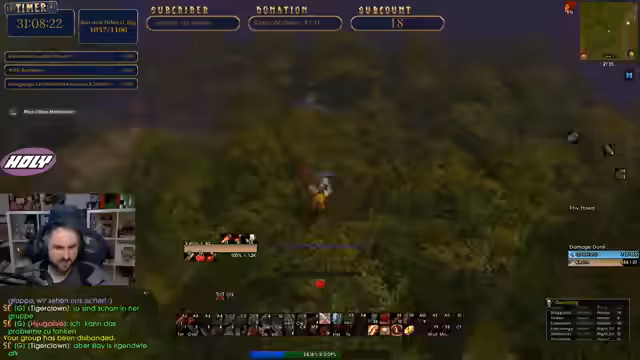 02:12:27Die Bildung einer Gruppe für den Dungeon 'Burg Tiefenfeste' wird vorbereitet. Ein Gruppenmitglied stirbt jedoch durch einen PC-Absturz, was zu Diskussionen über die Zuverlässigkeit von Add-ons wie Gilden-Addons führt. Gleichzeitig gibt es technische Schwierigkeiten mit der Funktion, die Level der anderen Gruppenmitglieder anzuzeigen, was die Koordination erschwert.