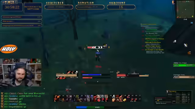 00:17:12Der Streamer konzentriert sich intensiv auf das Questen in der Region Redridge Mountains, um Level zu erreichen und Ausrüstungsgegenstände zu farmen. Er trifft auf gefährliche Mobs und stellt fest, dass es weniger High-Level-Tanks gibt. Während des Spielens tauchen immer wieder kurze, humorvolle Momente auf, wie das Verwechseln von Chat-Namen und die Erwähnung von Clips, die von Zuschauern gemacht wurden.