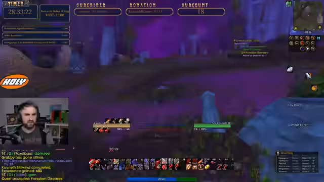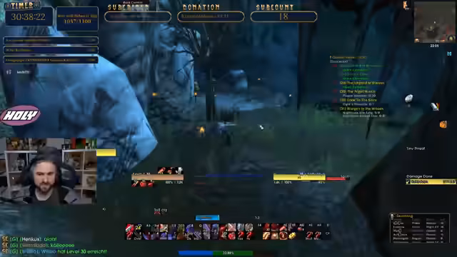 12:22:45Nach einer ruhigen Phase schaut der Streamer auf die Online-Status seiner Gilde. Er stellt fest, dass viele offline sind, wahrscheinlich aufgrund von Schlaf oder Ferien. Um die Stimmung aufzulockern, unterhält er sich mit dem Chat über South Park und which Charakter welche Klasse gespielt hätte. Dies führt zu einer lustigen Nostalgie-Diskussion über WoW im Peak.