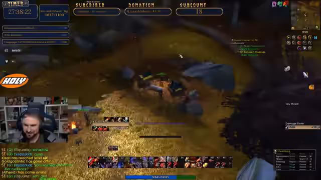 11:33:38Ein unerwarteter Tod in den Barrens führt zu einem plötzlichen PvP-Zusammenbruch. Der Streamer und seine Gruppe werden von einem Rogue angegriffen, und es herrscht Chaos im Chat. Der Streamer analysiert den Fehler und stellt fest, dass es aufgrund von Panik und nicht optimalen Fähigkeitsnutzungen geschah. Dies zeigt die Gefahren des PvP in Low-Level-Gebieten.
