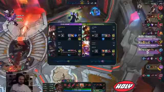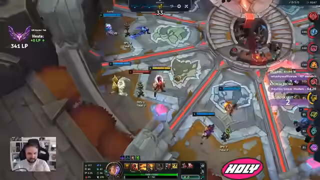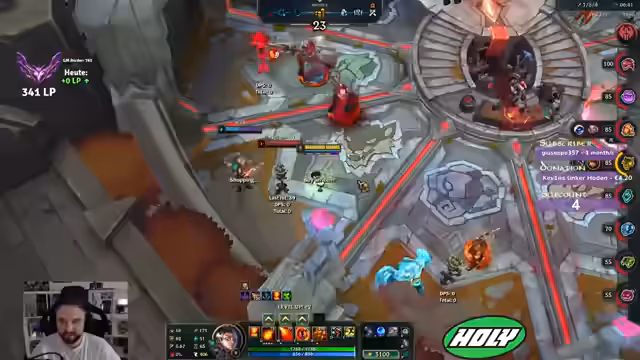 01:32:27Die Spieler diskutieren über die optimale Nutzung von Pflanzen und die Fokussierung auf bestimmte Gegner im Kampf. Sie stellen fest, dass ein One-Shot nicht funktioniert hat und es schwierig war, den Gegner zu besiegen. Ein Spieler berichtet von Problemen mit dem 'Black Hole'-Augment, das ihn behindert hat. Es wird über die Auswahl von Gegenständen wie 'Blackfire' oder 'Cosmic Spender' nachgedacht, wobei 'Cosmic Spender' trotz des hohen Manakosten als notwendig erachtet wird. Die Spieler planen, sofort mit der Ultimate auf einen der Gegner zu gehen, sobald sie deren Position kennen. Sie nutzen Pflanzen und Portale, um in den Kampf zu gelangen und ihre Ultimates zu koordinieren. Ein Spieler beklagt, dass sein Tibbers nicht wie gewünscht agiert und sich von ihm wegbewegt, obwohl er ihn nicht steuert, was auf einen Bug hindeutet. Sie erkennen, dass sie gegen bestimmte Gegner-Kombinationen, wie Renata, eine ähnliche Strategie anwenden müssen, indem ein Spieler das Portal nimmt und der andere die Ultimate einsetzt.