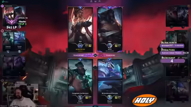 02:40:24Die Spieler äußern erneut den Wunsch nach "richtigen Champion-Dingern" und beklagen, dass sie Champions erhalten, die sie nach Reworks noch nie gespielt haben, wie Udyr. Sie kennen zwar die Fähigkeiten, wissen aber nicht, wie sie diese effektiv einsetzen sollen. Die Diskussion dreht sich auch um die Komplexität und den "unspaßigen" Aspekt einiger Champions. Es werden gegnerische Team-Kombinationen wie Maokai und Yuumi als "crazy" und wünschenswert für das eigene Team bezeichnet. Die Spieler sind besorgt, dass die Gegner bald die erforderlichen Punkte für den Sieg erreichen könnten. Es wird die Hoffnung geäußert, dass das Turnier weitergeht und sie die Chance bekommen, eine bessere Platzierung zu erreichen, da sie noch weit von den Top-Punkten entfernt sind. Die Strategie, "Erster zu werden", wird beibehalten, um eine gute Platzierung zu erzielen.