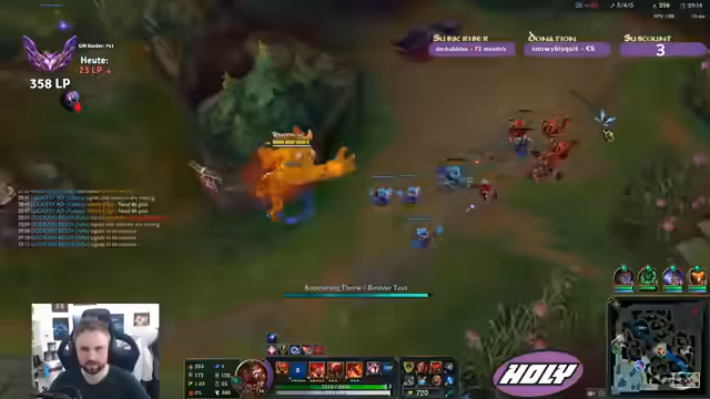 00:00:58Der Stream beginnt mit einem unmittelbaren Einstieg ins Thema SoloQ, wobei der Fokus auf dem Erleben von frustrierenden Matches liegt. Besonders hervorgehoben wird die anspruchsvolle Master-Elo und das Ärgerliche von_disconnects, die die Spielqualität stark beeinträchtigen. Des Weiteren wird über Champion-Picks diskutiert, die den Nerv treffen, wie Vayne top, und es werden Alternativen wie Gnar oder Cannon vorgeschlagen. Der Streamer reflektiert zudem seine lange Spielzeit von 25 Jahren League of Legends und denkt über das Quiten des Spiels nach, wobei er sich ironische Bonis von Riot vorstellt.
