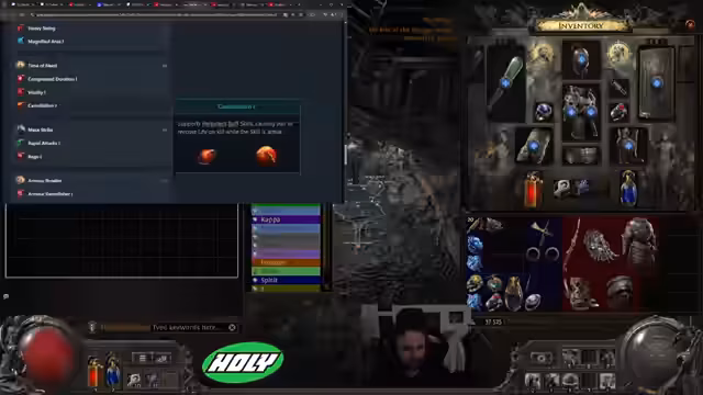 00:00:08Der Stream startet mit der Diskussion über die illegale Qualität eines gezündeten Schusses. Nach dem Erhalt eines Divine-Geldes wird das Ziel definiert, den Barb Shouter Build umzubauen. Der Fokus liegt darauf, die nötigen Support-Gems wie Second Wind und Efficiency zu finden, um die Schadensausgabe zu verbessern und den Sustain zu gewährleisten. Die anfängliche Ausrüstung und die enthaltenen Güter werden als unzureichend bewertet, um die Mechaniken des Builds effizient zu nutzen.