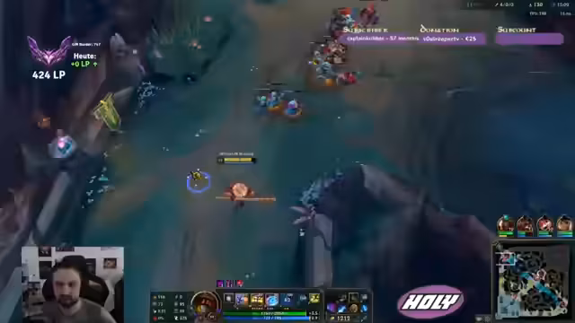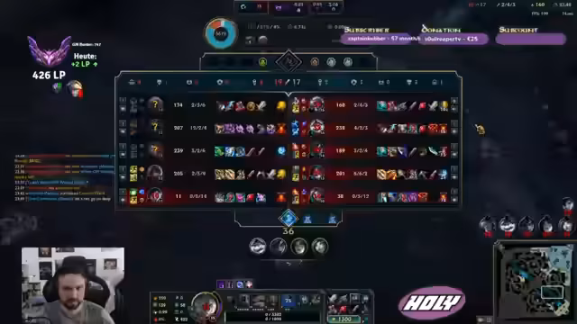 Im Verlauf des Streams wurden mehrere Matches in League of Legends gespielt. Ein Fokus lag auf Champion-Entscheidungen und taktischem Item-Building, um sich gegen die Gegner durchzusetzen. Trotz schwieriger Phasen konnten Siege errungen und ein positiver Gesamtwert plus 3 LP erreicht werden.