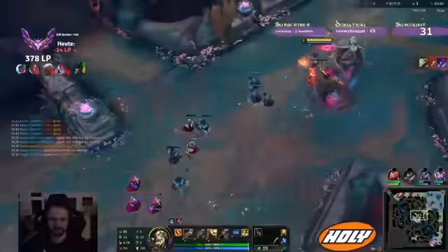 00:17:44Nachfolgende Spiele werden gespielt, unter anderem mit Champions wie Kasadin und Olaf. Der Streamer diskutiert Match-ups, die Bedeutung von Silber-Rollen und die Notwendigkeit von CC-Fähigkeiten gegen bestimmte Gegner wie Master Yi. Er äußert sich auch über die Stärke von Spielern und die Teamzusammensetzung in den gespielten Runden.