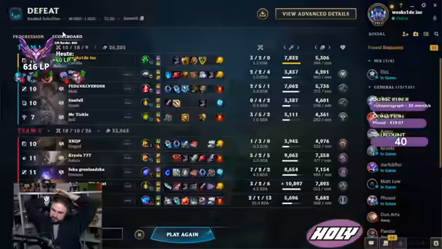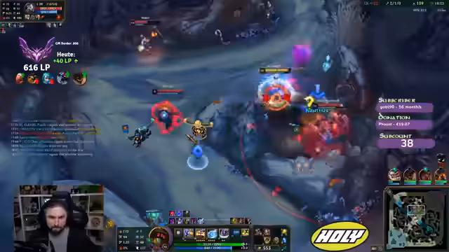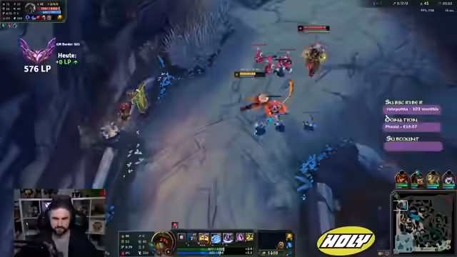 04:16:51Der Streamer vergleicht seine aktuelle Situation mit einem potenziellen Gangplank-Matchup und ist froh, dies vermieden zu haben. Er berichtet von technischen Problemen wie Lags und diskutiert die Regeln für einen möglichen Spielneustart. Die Diskussion dreht sich um Ranked-Strafen für Dodge-Verhalten, LP-Verluste und Wartezeiten. Später analysiert er einen成功的en Roam des Supports, der das Match verändert.