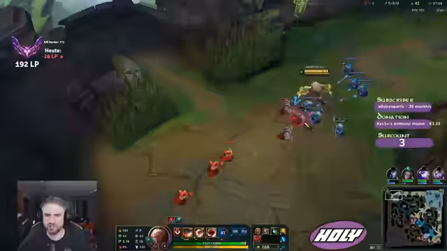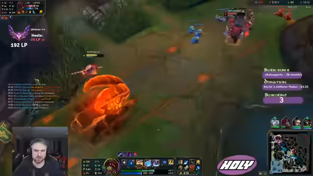 00:00:07Der Stream beginnt mit Tests der Serververbindung und der Sorge, dass die Server aufgrund vieler gleichzeitiger Anmeldungen überlastet sein könnten. Trotz anfänglicher Bedenken scheint die Verbindung stabil zu sein. Es wird über Champion-Bans gesprochen, insbesondere Riven, und die Erwartung, dass Darius gepickt wird, sobald er nicht gebannt ist. Dies bewahrheitet sich prompt, was den Streamer frustriert. Es gibt Diskussionen über Lags und Desyncs im Spiel, die das Spielerlebnis beeinträchtigen. Trotz der technischen Schwierigkeiten wird versucht, das Beste aus der Situation zu machen und sich auf das Gameplay zu konzentrieren. Die Spieler äußern ihren Unmut über die Serverprobleme und die Auswirkungen auf ihre Spiele.