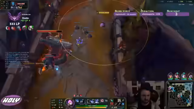 01:09:36Der Streamer spricht darüber, dass er im Level zurückliegt und den Seil nicht 1v1 fighten kann, obwohl er Kamele spielt. Er äußert seine Überraschung darüber, dass er den Fein doch besiegen kann und fragt sich, warum. Es wird überlegt, welche Items als nächstes gebaut werden sollen, wobei Deathdance und Stairax in Betracht gezogen werden. Der Streamer kommentiert, dass er später den Dark-Elf Staub eines Zuschauers fressen wird, und reagiert auf den Kommentar eines kranken Zuschauers. Es wird über die Anzahl der Tode in diesem Spiel gewettet. Der Streamer analysiert, welche Picks der Kollege im Team hat und überlegt, was er gegen Swaintop spielen soll, wobei Irelia in Betracht gezogen wird. Er wechselt jedoch von Irelia und spielt stattdessen Corki mit Swain Bottom. Es wird über die unwahrscheinlichen Kanalpunkte-Wetten diskutiert, insbesondere über die Möglichkeit von Null-Toden mit Cannon.