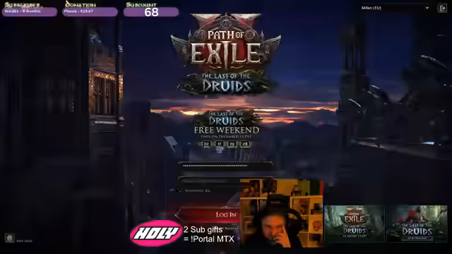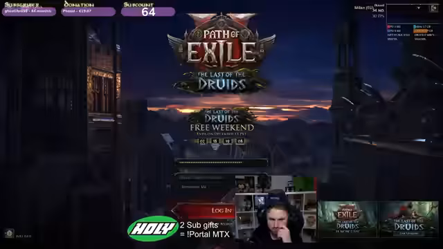 00:00:14Der Stream beginnt mit technischen Vorbereitungen, darunter Downloads und Servereröffnungen. Der Streamer diskutiert verschiedene Klassen wie Zündler, Anarche und Druiden, wobei er sich für einen Druiden-Bären entscheidet. Es gibt Diskussionen über Builds, Fähigkeiten und Items, wobei der Streamer besondere Aufmerksamkeit auf den Bären-Skin von den Game Awards legt, den er sich wünscht.