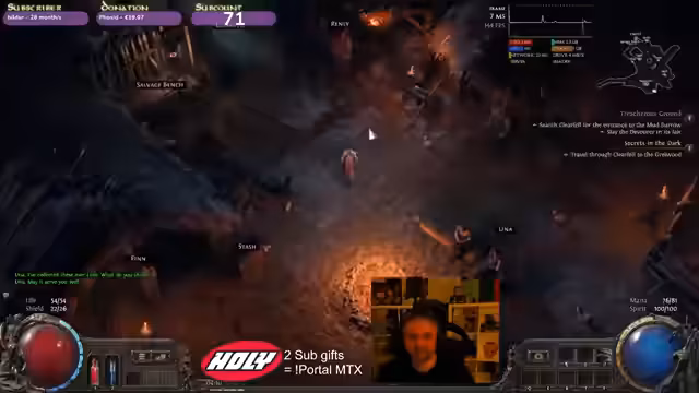 00:33:22Der Streamer bemerkt, dass er den Filter fälschlicherweise in PoE 1 kopiert hat, was zu einem Mangel an Item-Anzeigen führt. Er findet jedoch schnell Ausrüstung mit guten Stats wie Fire Damage und Int. Er ist positiv überrascht vom Movement und dem Spielgefühl des Bären-Builds, obwohl er sich manchmal tankiger fühlt, als er tatsächlich ist. Er passt seinen Build an, indem er Rapid Attacks für mehr Geschwindigkeit hinzufügt und sich über die veränderten Layouts der Skill-Trees wundert. Die Rage-Anzeige und die Animationen des Bären werden positiv hervorgehoben. Er stellt fest, dass das Spiel schwieriger ist als erwartet und dass er mit einem Minion-Build wahrscheinlich weniger Probleme hätte. Er sammelt Wisdom Scrolls und verkauft Items, um sich auf den weiteren Verlauf vorzubereiten. Die Diskussion im Chat dreht sich auch um andere Spieler, die den Bären-Build spielen, und die Frage, ob jemand den Werwolf spielt. Er bemerkt, dass die Gegner in diesem Gebiet wenig Schaden machen und dass er bereits viel Leben hat. Die Rage-Mechanik und die Server-Performance werden ebenfalls thematisiert, wobei die Server diesmal gut zu funktionieren scheinen.