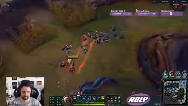 00:20:55Die erste Entscheidung zur Map-Kontrolle fällt um den Drachen. Nachdem der Jungler des eigenen Teams gecancelt wird, entscheidet man sich dafür, den Drachen zu nehmen und den Turm zu pushen. Es folgen intensive Kämpfe um Objekte und vision. Der Streamer kommuniziert ständig mit seinem Team, gibt Anweisungen zum Rotieren und nutzt seinen Flash aggressiv, um Vorteile zu sichern und Feinde abzulenken.
