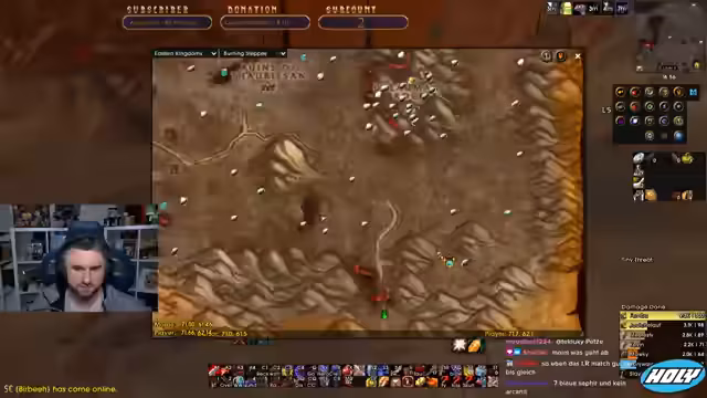 00:10:36Während des Runs durch UBRS erklärt der Streamer die spezifischen Mechaniken der verschiedenen Mobs und Bosse. Er gibt Anweisungen, wie man sich verhalten soll, um Schaden zu vermeiden und den Kampf zu überstehen. Besonders wichtig ist der richtige Umgang mit den knock-backfähigen Gegnern, die Spieler in tödliche Eier stoßen können, und die Koordination beim Kampf gegen den ersten Boss, der besondere Aufmerksamkeit erfordert.