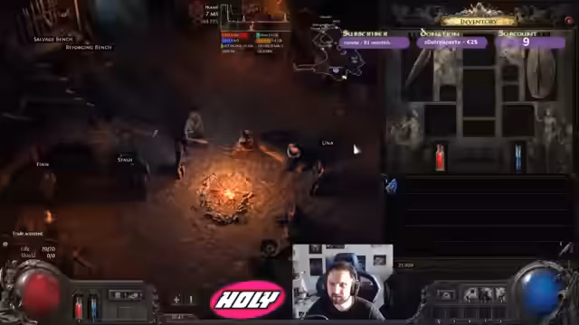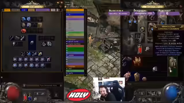 01:47:02Streamers Chat interaktiv, er stellt Vorhersagen an und nimmt Spenden an. Es wird über ein neues Gadget im Spiel gesprochen: ein Skin, der seinen Armbrusten-Charakter wie ein Maschinengewehr aussehen lässt. Der Stream verläuft entspannt, mit viel Fokus auf das Looten von Items und das Verbessern der Ausrüstung, insbesondere von Ringen und Schuhen. Auch die Begegnung mit einem Schurken-Exilen wird als ereignisreich beschrieben.