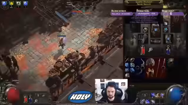 03:15:58Der Streamer ist zuversichtlich, Arsonist durchspielen zu können, sucht aber noch nach einem passenden Guide. Es wird erwähnt, dass Zepter keine Quality mehr erhalten, wenn man sie hochpumpt. Der Streamer überlegt, ob die Feuerdinger (Totenköpfe) zu schwach sind und ob es besser wäre, mit Bogenschützen und Gift zu kämpfen. Es wird ein Dex-Problem gelöst. Der Streamer erinnert sich an einen Build mit dem Feuerhund und Unique-Schuhen, die jeden Korps in der Nähe zur Explosion bringen. Es wird jedoch angemerkt, dass diese Schuhe schwer zu bekommen sind. Der Streamer verabschiedet sich, kündigt einen Raid in 40 Minuten auf dem Second Channel an und vermutet technische Probleme aufgrund eines alten BIOS-Updates.
