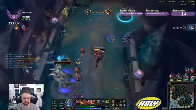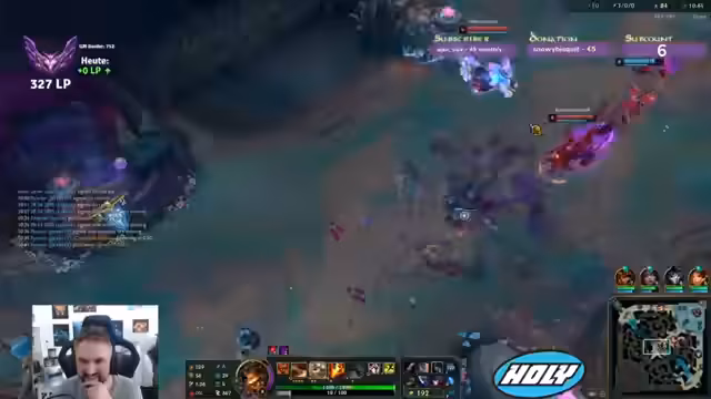 02:03:08Der Streamer kommentiert, dass er nicht wütend klingt und fragt, ob seine Lane eine Weak Side ist. Er plant, Rage zu stacken und überlegt, Deathdance zu kaufen. Er stellt fest, dass seine Aurora nicht auf der Botlane ist und kommentiert, dass dies in Low Master vorkommt. Der Streamer hat Black Cleaver fertig und überlegt, was er als nächstes kaufen soll. Er bemerkt Grillgeruch und wird neidisch. Es wird über Currywurst und Pommes diskutiert. Der Streamer bedankt sich bei einem Zuschauer und kommentiert, dass sein Team gestorben ist. Er fragt nach dem Sinn von PD auf Jin und kritisiert den Item Build seines Teams. Der Streamer kommentiert, dass sein Team AFK ist und er doch noch Punkte bekommt. Er kritisiert den Pyke in seinem Team und lobt den Movement Speed von Rapid Fire.