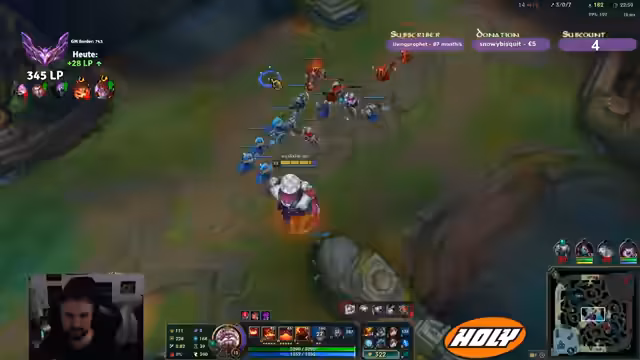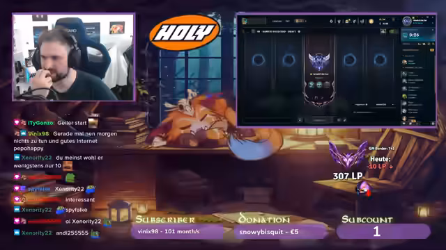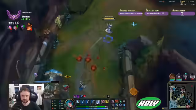 00:17:46Nach einigen schwierigen Games stellt der Streamer fest, dass er in einem Spiel eine sehr gute Leistung gebracht hat, jedoch keine Anerkennung im Chat erhält. Er beschreibt seine Leistung als 'fetter Solo-Carry' ist jedoch enttäuscht, weil er für seine Bemühungen nicht die erwartete Anerkennung vom Chat erhält. Er erwähnt auch, dass sein Level zugelegt hat und er nun bei dem Champion Jayce ist und dies als eine seiner stärksten Leistungen ansieht.