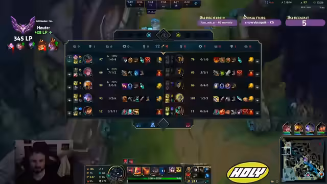 00:24:00Der Streamer interagiert mit dem Chat und äußert seine Gedanken über den Nutzen von Abstimmungen im Spiel. Er kommentiert auch eine Situation in einem anderen Spiel, bei der ein Spieler desertiert ist, was zu reduzierter LP führt. Es gibt Diskussionen über andere Spiele, wie World of Warcraft und TFT, und der Streamer spricht über seine Erfahrungen mit verschiedenen Charakteren und Gameplays. Er erwähnt auch seine Pläne für den Rest des Abends und seine Absichten, weiter zu spielen.