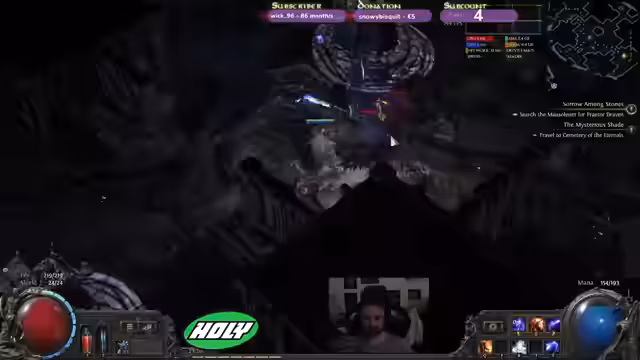 00:13:24Während des Spielverlaufs berichtet der Streamer von mehreren Toden, besonders im Hardcore-Modus, was auf hohe Gefahren in den Bosskämpfen hinweist. Gleichzeitig feiert er außergewöhnliche Loot-Drops, darunter mehrere exotische Orbs (Exalts), was den hohen Zufallsfaktor und die Belohnungen des Spiels unterstreicht. Sein Build fühlt sich stark an, besonders im Vergleich zu früheren Versuchen mit einem Krieger.