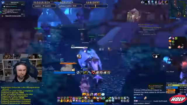 00:07:14Nach dem Dungeon-Run wechselt der Streamer seine Waffe, um sich auf die bevorstehenden Aktivitäten vorzubereiten. Der Fokus verschiebt sich stark ins PvP. Der Streamer ist gespannt auf den Start der Arenen und Battlegrounds in Pre-Patch-Phase und Pre-Patch. Es werden die geplanten Ziele wie das Erreichen von Rang 1, das Sammeln von PvP-Ehre für Waffen und der Start als 'Flag Carrier' im Arathi Basin Battleground diskutiert. Er drückt seine Vorfreude auf das kommende PvP-Geschehen aus und plant, sich auf den Jäger als Hauptcharakter zu konzentrieren.