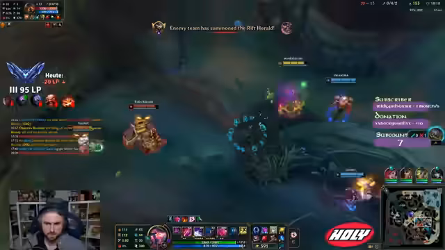 00:03:45Der Streamer berichtet über eine verlorene Streak von Diamant 1 bis Master 1 und führt dies teilweise auf mentalen Druck und zufällige Spiele zurück. Er erwägt, sich vom Spiel für eine kurze Zeit abzuwenden, um Abstand zu gewinnen. Anschließend tauchen Champion-Picks auf, darunter Gragas und der Support Kamel. Es werden lauterstarken Gegner wie Jax und Nunu kritisiert. Der Streamer analysiert seine MMR, die höher ist als seine aktuelle Elo, was dazu führt, dass er in Master-Spielen mit Grandmaster- und Challenger-Spielern konfrontiert wird. Dies führt zu unfairen Matchups und hohen LP-Verlusten bei gleichzeitigem MMR-Gewinn, was den Weg in höhere Elos erschwert.
