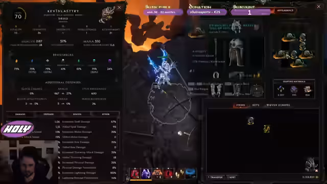 00:24:12Der Streamer entscheidet sich für einen Wechsel zum Totem-Build. Er hat Angst, dass der Totem-Build nicht so stark ist wie der aktuelle Druiden-Build, aber er will es trotzdem ausprobieren. Er beginnt mit der Anpassung der Items, Skills und Ausrüstung, um den neuen Build zu optimieren. Das Finden von passenden Exalted Items und das Fixen der Resistenzen ist seine Priorität.