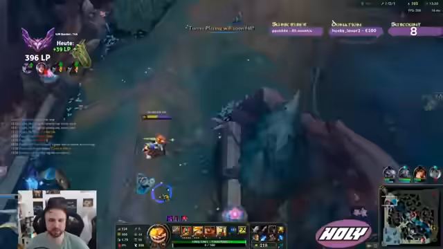 02:24:52In einem späteren Spiel mit Gangplank auf der Top-Lane gegen einen Yorick läuft es für Kev1ntt weniger glatt. Trotz eines erfolgreichen Early-Game und eines guten Vorsprungs macht er mehrere kritische Fehler in der Mid-Game-Phase. Er verschwendet seine Ultimate, hätte aber auf die gegnerische Poppy zielen sollen, und seine Teamkameraden sind in entscheidenden Fights unterlegen. Ein gegebener Free-Kill und schlechte Positionierung führen dazu, dass er das Spiel verliert, was ihn frustriert.