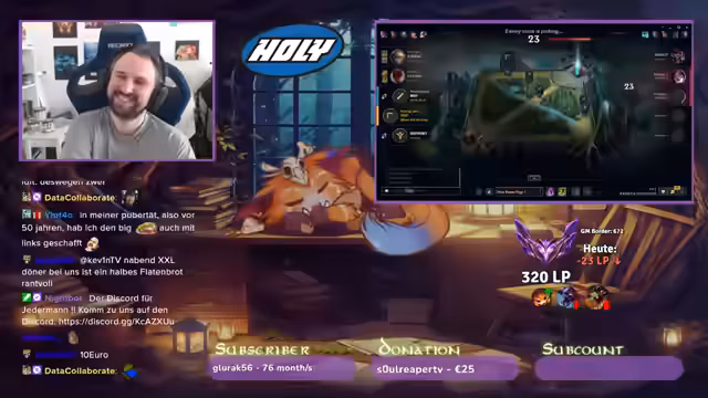 00:11:37Das erste Spiel war gegen ein Matchup, mit dem ich mich nicht so wohlfühle, da ich nicht wusste, was ich picken sollte und ich gerade etwas erschöpft und müde bin. Ich hatte den ganzen Morgen Kopfschmerzen. Mal sehen, wie sich der Tag entwickelt. Ich fühle mich auf jeden Fall nicht fit zum Zocken heute, also nicht so frisch, wie ich es normalerweise tue. Ich fühle mich langsam und müde, aber mal sehen. Ich spiele nichts anderes, wir müssen schon ein bisschen League spielen, das bringt alles nichts. Es wurde Gold erreicht. Der PC wurde nicht gesponsert, ich habe ihn mir selbst gekauft. Es wurden 3000 Euro für den PC ausgegeben, zumindest war das der Preis bei Caseking. Im Nachhinein würde ich wahrscheinlich aufgrund der 13. Generation eher einen AMD-Prozessor nehmen. Die Lüfter sind nicht leise, aber die Kraka läuft gefühlt nie. Die Ventilatoren von der Kraka müssen nur in wenigen Games angehen. Es sind die ganz normalen Ventilatoren.