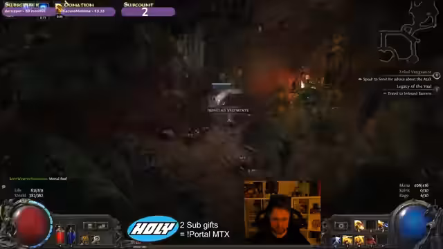 00:01:40Der Stream beginnt mit dem Start eines Hardcore SSF-Charakters im Path of Exile. Der Fokus liegt auf der Wyvern-Gestalt des Druiden, die ab Level 6 mit einem Level-3-Skillstein freigeschaltet wird. Erste Erfahrungen mit dem Build werden geteilt, insbesondere die hohe Single-Target-Damage und das Potenzial für gutes Wave-Clearing durch Wing Blast. Der Spieler diskutiert bereits früh Strategien zur Charge-Generierung (Power Charges und Rage) und plant den Übergang zu Energy Shield ab Akt 4.