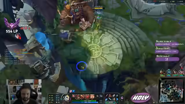 00:08:32Während des Streams wird das Matchup kontinuierlich analysiert. Der Streamer kritisiert die Bramble West des Gegners, die als sehr stark empfunden wird und ihm in früheren Duellen erheblichen Schaden zugefügt hat. Er sammelt wertvolle Erkenntnisse über den Schadensoutput und die Taktiken des Gegners. In Bezug auf seinen eigenen Itembau entscheidet er sich für einen On-Hit-Build, wie es gegen den mobilen Gegner sinnvoll erscheint. Er diskutiert seine Entscheidung für Frozen Heart und stellt fest, dass dies ihm zwar nur Angriffsgeschwindigkeit, aber gegen dieses spezifische Matchup eine wichtige Passive bringt.