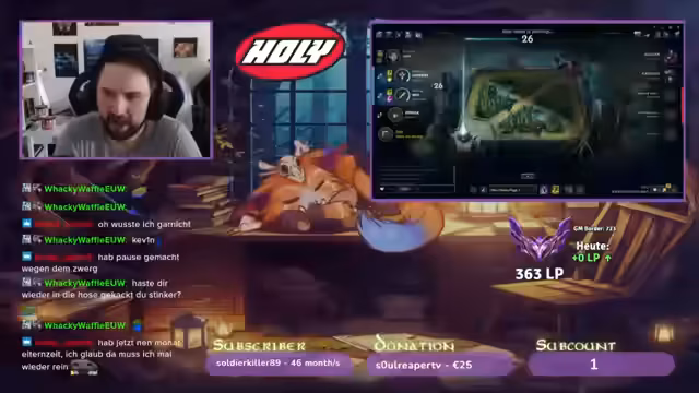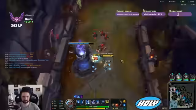 00:38:37Der Streamer äußert seine Begeisterung für das Spielen von Kennen und dessen Fähigkeit, das Spiel zu carrien. Er analysiert die Stärken und Schwächen des Champions in verschiedenen Spielsituationen. Es wird diskutiert, ob Patch 28 schon auf dem PBE ist. Es wird überlegt, ob Electrocute eine gute Wahl für den Champion ist. Der Streamer erklärt, warum er sich für Nimbus Cloak anstelle von Axiom Arcane entschieden hat. Er lobt die Stärke des Nimbus Cloak in Kombination mit Flash und Ulti. Es wird überlegt, ob Cheap Shot actually is worth is auf Cannon. Der Streamer kündigt eine neue Collectors Box an und es wird überlegt, ob man Last Epoch streamen soll. Es wird überlegt, ob Last Epoch gestreamt werden soll und die angenehmste Game Erfahrung wird thematisiert. Es wird überlegt, was ein JRPG ist. Es wird überlegt, ob es neue Fails dazukommen. Es wird überlegt, ob man Paulaner Garten Geschichten erzählen soll. Es wird überlegt, warum die Kopfschmerzen da sind und ein neues Kissen gekauft werden muss. Es wird überlegt, ob es neue Bills gibt. Es wird überlegt, ob Leonas ein guter Supporter ist. Es wird überlegt, ob es ein Tornado-Schamane gibt. Es wird überlegt, ob Axiom Arcanist auf Cannon gespielt werden soll. Es wird überlegt, ob Swarley wieder getrollt hat. Der Streamer wirbt für Holy Energy Drink und kündigt eine neue Geschmacksrichtung an, die bald vorgestellt wird. Er gibt Tipps, wie man mit dem Champion spielt und welche Items man bauen sollte.