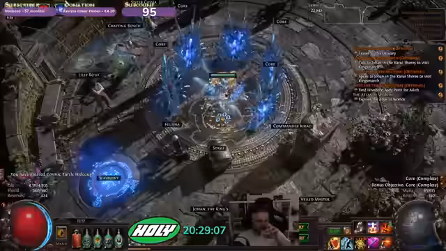 Es wurde der Versuch unternommen, durch einen Subathon das Ziel Level 100 im Hardcore-Self-Found-Modus von Path of Exile zu erreichen. Ein Build mit Fokus auf Chaos Schaden wurde vorbereitet. Der Vorgang bestand aus dem Farmen von Währungen wie Scarabs und Decks sowie der kontinuierlichen Verbesserung der Ausrüstung. Es wurde intensiv an der Optimierung des Talentebaums und der Ausrüstung gefeilt, um den Herausforderungen des Endgames gewachsen zu sein.