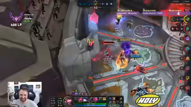 02:49:39Der Streamer spielt mit einem festen Team, bestehend aus Rereto und Maxis. Es kommt zu intensiven Teamkämpfen, bei denen der Streamer Mechanics mit Champions wie Yasuo analysiert. Er beschreibt die Fähigkeiten 'Wild Charge' und 'Goliath' und deren Effekt. Auch die Kommunikation im Team ist wichtig, als er bittet, 'Rückendeckung, Schutz' zu bekommen. Die Zusammenarbeit wird als 'cool' und 'Bros in-game' bezeichnet, was den Team-aspekt hervorhebt.