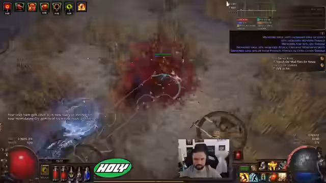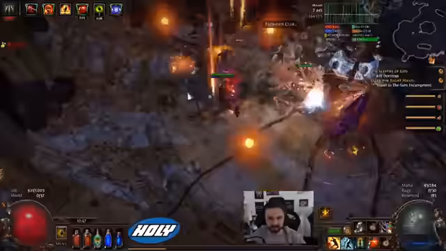 02:56:55Wichtige Verbesserungen an der Ausrüstung werden vorgenommen. Ein neuer Mercenary mit Determination gefunden und ein besserer Schild sowie neue Handschuhe werden genutzt. Das Gameplay wirkt dadurch deutlich stabiler und sicherer. Die Map-Läufe verlaufen reibungslos, und der Streamer hat offensichtlich weniger Probleme mit den Gegnern. Der Build ist jetzt wesentlich tankiger und effektiver.