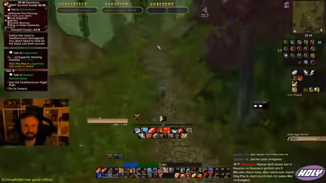 05:17:45Der Streamer widmet sich dem Abschluss von Quests in Desolace und stößt dabei auf erhebliche Herausforderungen. Er beschreibt, wie er bei der Jagd auf Doomwater Captains Probleme mit dem Encounter-Design und den Respawns hat und wiederholt den Einsatz von Elunes Anmut überleben muss. Die ständigen Tode in diesem Gebiet frustrieren ihn zutiefst, was ihn dazu bringt, die nervige Plasma-Quest zu überspringen und sich auf sicherere Aktivitäten zu konzentrieren. Die Gegend gilt als besonders gefährlich und unangenehm für ihn.
