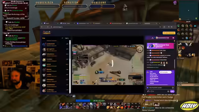 00:30:14Der Streamer beobachtet die Aktivitäten anderer Streamer und Spieler in der Community. Ein Kollege namens 'Papa Platte' wird dabei kritisch erwähnt, der einen Boost nutzt, um extrem schnell von Level 1 auf 60 zu kommen, was vom Streamer als langweilig und unehrlich angesehen wird. Gleichzeitig analysiert er die XP-Raten verschiedener Levelmethoden und stellt fest, dass das Grinden von Monstern in man Gebieten eine hohe Rate pro Stunde erreichen kann.