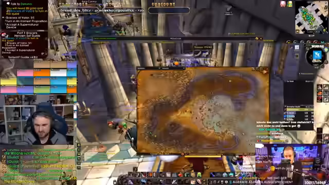 05:44:34Nachdem die Gruppe die Quest erfolgreich abgeschlossen hat, wird die anstehende Gegenstandssammlung besprochen. Ein Spieler zeigt seine starken Ausrüstungsgegenstände, während der Streamer vermerkt, dass ihm bestimmte Materialien wie Seide fehlen. Es wird kurz über die Lagerung von Gegenständen und die Frage gesprochen, wer noch Seide besitzt.