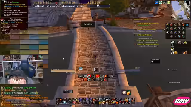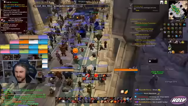 04:45:16Es wird von einem besonders intensiven und waghalsigen Kampf erzählt, der knapp zu einem tödlichen Ausgang geführt hätte. Der Streamer beschreibt eine äußerst hektische Situation, in der er verzweifelt versuchte, den Aggro zu managen, während er Kreaturen festhalten und gleichzeitig den Heilpriester mit massiven Heilungen unterstützte hat. Er betont, dass er in dem Moment agierte und keine Zeit zum Nachdenken hatte, was die schnellen Reaktionen der Gruppe rettete. Die Aufregung war so hoch, dass der Streamer mehrfach von seinem eigenen fastigen Tod sprach und den anderen Spieler für seine kühnen Calls lobte.