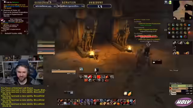 05:40:34Der Streamer äußert massive Frustration über einen gescheiterten Boost für seinen Charakter, der ihn 60 Euro und wertvolle Spielzeit kostete. Da er das resultierende T6-Set nicht nutzt, fühlt sich der gesamte Fortschritt sinnlos. Überlegt, stattdessen einen gierigen Paladin zu spielen, ist sich aber unsicher und spricht kurz seine Motivation an, ein Tank zu sein, der alles machen kann.