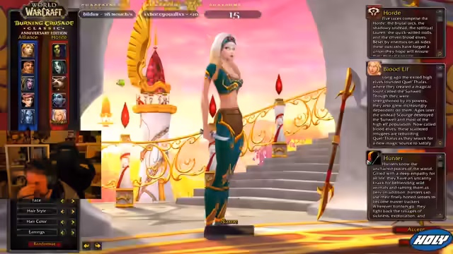 09:40:33Die Diskussion verlagert sich auf die ästhetische Gestaltung des Charakters. Es finden ausführliche Vergleiche zwischen männlichen und weiblichen Blutelfen statt, wobei Faktoren wie Hitbox-Größe, Animationen und das Erscheinungsbild von T6-Rüstung im Vordergrund stehen. Er entscheidet sich letztendlich für einen männlichen Blutelf, der ihm als 'Bulldozer' und 'Chonk' erscheint und dessen Aussehen ihn motiviert.