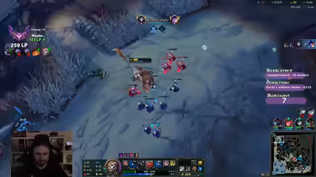00:25:17Der Streamer kritisiert seine eigene Leistung, da er Minions nicht richtig gemampft hat und das Team trotz einer guten Komposition das Spiel verloren hat, weil sie nicht zusammengearbeitet haben. Er erwähnt, dass sie drei 'Go-Leute' hatten, dies aber nie ausgenutzt wurde. Er plant, ein Deadman's Blade für AP zu kaufen und genießt das 'Nom, nom, nom' des Vladimir. Er bemerkt, dass seine Auto-Attack-Reichweite durch seine Größe erhöht ist und er noch ein Monster oder Minion-Monster mampfen muss. Er ist überrascht, dass das Team gewinnt, wenn sie zusammenarbeiten, und beklagt, dass sie es sich selbst schwer gemacht haben, indem sie nicht gegroupt waren. Er erwähnt, dass die Senna sehr nervig war und er viele Tyrant-Shots kassiert hat. Er überlegt, wie er strategisch an das nächste Spiel herangehen soll, ob er Zahin zeigen oder nicht zeigen soll.