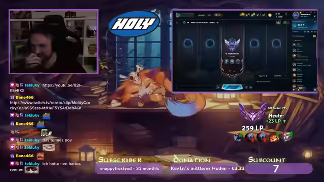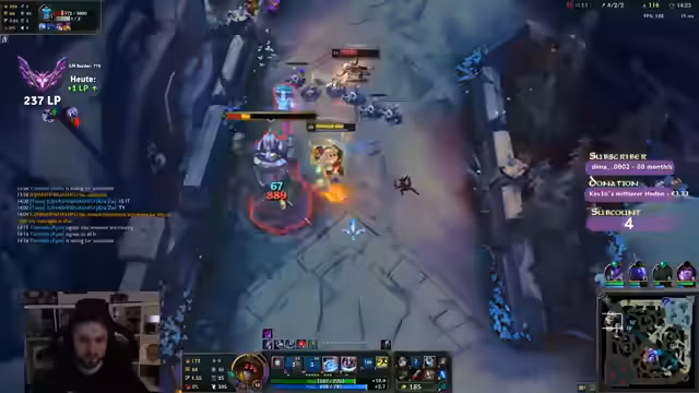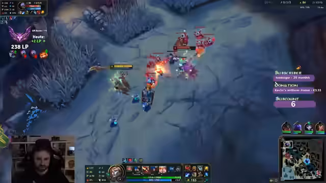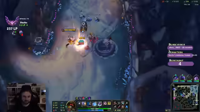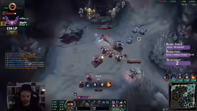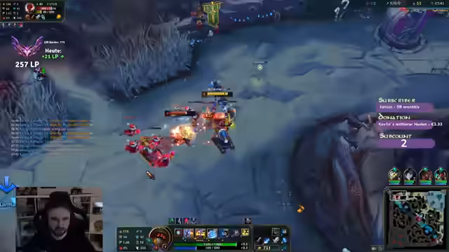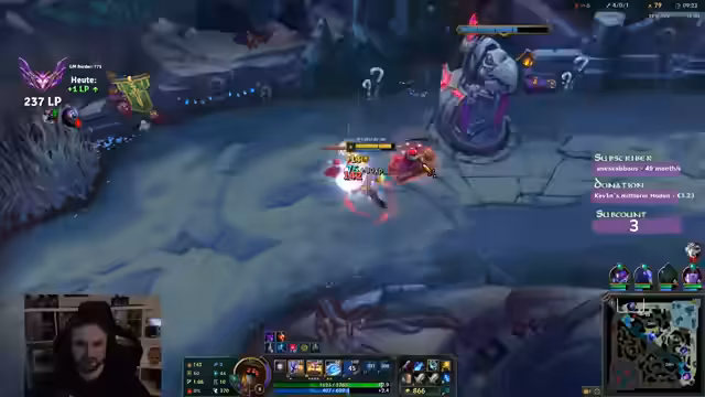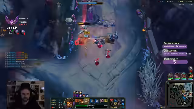 00:00:25Der Streamer begrüßt die Zuschauer und spricht über seine aktuelle Spielsession in League of Legends, wobei er einen zweiten Charakter pusht. Er diskutiert die Wahl des Charakters und die Herausforderungen gegen bestimmte Gegner wie Vladimir Top, wobei er 'Fischmolli' als Gegenmaßnahme vorschlägt. Die Team-Zusammensetzung sorgt für Verwirrung, da Spieler mit niedrigen Win-Rates und Diamond 2 Spieler in derselben Lobby sind. Er erwähnt, dass er sich auf Genshin Impact konzentriert und versucht, seine Minions gut zu last hitten, um farmtechnisch im Vorteil zu sein. Strategische Item-Entscheidungen wie Swifties oder Tank-Builds werden abgewogen, während er die unglückliche Team-Zusammenstellung beklagt. Er erwähnt auch, dass er Witcher 3 noch nicht gespielt hat, es aber im Angebot gekauft hat.
