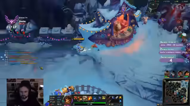 00:08:40Der Streamer konzentriert sich auf das Mampfen von Minions und das Pushen der Lane, um einen guten Reset zu erzielen, obwohl er keine Boots hat. Er bemerkt, dass seine Leona bereits drei Tode hat und plant, Ninja-Tubbies als Item zu kaufen, da diese in der aktuellen Situation wichtig sind. Er ist unsicher wegen der Rengu-Ult, aber seine Ari hat die Situation gut gemeistert. Er überlegt, ob er Swifties oder Ninja Tubbies rushen soll, entscheidet sich aber vorerst für Ninja Tubbies, da sie sehr stark sind. Er bedauert, dass er die Story in Witcher 3 nicht weiterverfolgen konnte. Er nutzt Chou's Fähigkeiten, um Golems zu besiegen und Mana zu sparen. Der Streamer diskutiert die Effektivität von Hail of Blades mit Chogar E und überlegt, ob er mit Swifties noch besser performen könnte.