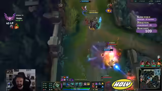 00:00:32Der Stream beginnt mit diversen Begrüßungen im Chat. Der Fokus liegt auf den aktuellen Ranked-Sorgen, insbesondere dem möglichen Drop von Platin nach Silber. Die LP-Situation kritisch diskutiert, wobei Grenzen und Bedingungen für einen Drop zwischen den Rängen erläutert werden. Es wird von einer potenziellen Rückkehr zu Dia 1 gesprochen, was als Alptraum empfunden wird. Eine Anfrage zum Testen von Champions für den Streamer bleibt unbeantwortet, da es sich um einen Troller handelt.