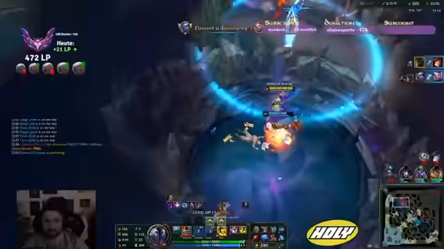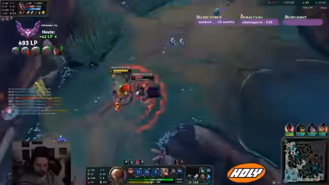 00:21:00Das Mittelspiel ist geprägt von riskanten Entscheidungen und Teamkämpfen. Der eigene Talon stirbt früh, was den Druck im Spiel erhöht. Es wird versucht, Drachen zu kontrollieren, aber die Koordination mit dem Team ist schwierig. Ein Gegner zweifach stirbt, und man erkennt, dass diese keine Flashes mehr haben. Der Streamer äußert seine Unsicherheit im Teamfight, wie man diese Situation am besten meistert. Trotz der Verluste bleibt man im Spiel und kann einen Vorteil erarbeiten, indem man das gegnerische Team ausmanövriert.