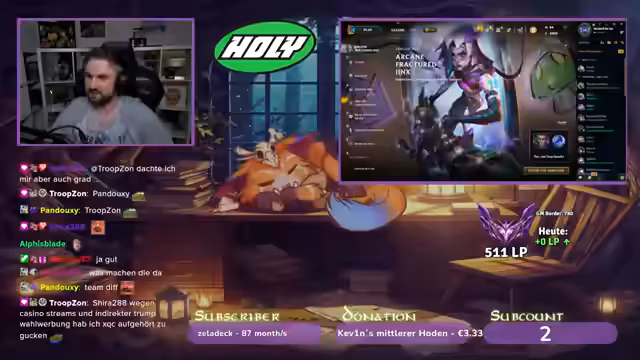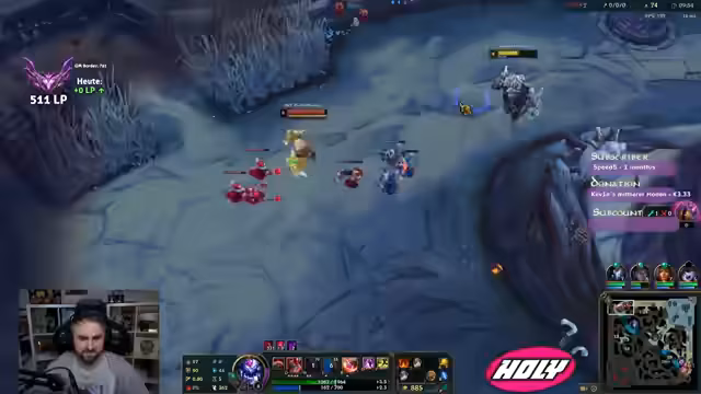 00:00:00Der Stream beginnt mit einer kurzen Wartezeit, während sich die Teilnehmer auf das Spiel vorbereiten. Es wird über die Champion-Picks und Bans diskutiert, wobei anfängliche Vorschläge wie Smolder schnell verworfen werden. Die Spieler überlegen, welche Champions gut gegen die erwarteten Gegner-Picks funktionieren könnten. Dabei werden Namen wie Udyr, Jinx, Sivir und Karma oder Lulu genannt. Es herrscht eine gewisse Unsicherheit und Abstimmung bezüglich der besten Strategie für den Draft. Die Kommunikation ist rege, und es wird versucht, die bestmögliche Teamzusammenstellung zu finden, um die Gegner zu kontern. Die Diskussionen drehen sich auch um potenzielle Ban-Optionen und die damit verbundenen Risiken, falls ein Gegner einen unerwarteten Champion wählt.