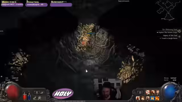 01:47:07Der Streamer bemerkt, dass er bereits Level 41 erreicht hat und somit den Baby Rage Build aktivieren kann. Er plant, nach dem ersten Lab den Build zu wechseln und muss dafür noch die Gegner killen, um das freizuschalten. Er skillt seinen Charakter um und wählt Warbreaker. Er stellt fest, dass der Ignore Warcry Cooldowns von 33% auf 25% generft wurde. Er skillt um und entfernt Bone Shatter, Leap Slam und Herod of Ash. Er fügt Shockwave Totem, Forge Hammer und Infernal Cry hinzu. Er bemerkt, dass er Swift Affliction benötigt und sucht danach. Er zieht den Lightning Ring an, um Dex zu erhalten. Er passt seine Skills an und fügt Magma Barrier hinzu. Er skillt seinen passiven Baum um und fokussiert sich auf Stärke. Er stellt fest, dass er fast pleite ist, aber alles Wichtige hat. Er aktiviert den Baby Rage und ist gespannt, wie stark er sein wird.