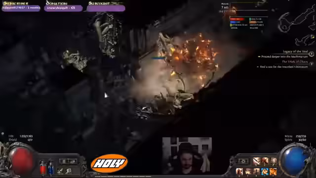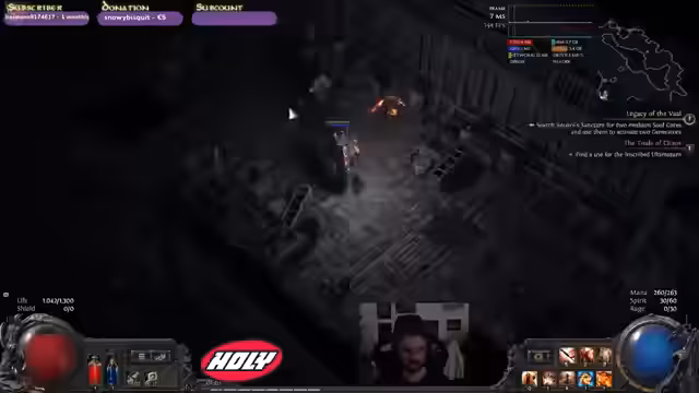 00:27:56Der Streamer experimentiert mit verschiedenen Skills und Ausrüstungsgegenständen, um seinen Build zu optimieren. Er holt sich die Magma-Barrier und stellt fest, dass sie sich noch etwas unhandlich anfühlt. Er probiert verschiedene Waffen aus, darunter einen Zweihänder, um zu sehen, ob er damit besser zurechtkommt. Er sammelt mehr Hämmer und sucht nach solchen, die ihm mehr Stärke geben. Er tauscht seine Schuhe und sein Schild aus, um seine Werte zu verbessern. Er findet einen neuen Hammer, der möglicherweise mehr Schaden verursacht als sein aktueller und überlegt, ihn zu verwenden. Er nimmt die Magma-Barrier Aura und bemerkt, dass sein Totem ordentlich Schaden verursacht. Er überlegt, welche Aura er nehmen soll und entscheidet sich für die Magma-Barrier. Er levelt weiter und freut sich darauf, bald den Baby Rage zu aktivieren.